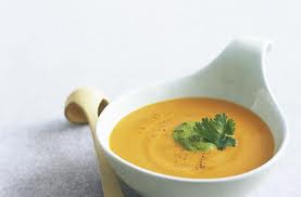 A sweet potato soup with chilli and ginger is blended until smooth to serve: